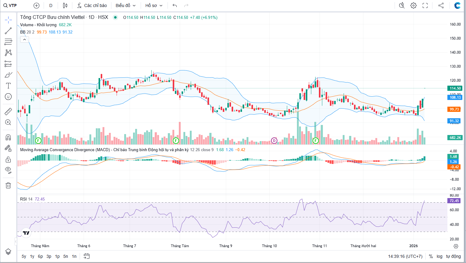 Đồ thị cổ phiếu VTP phiên giao dịch ngày 12/01/2026
