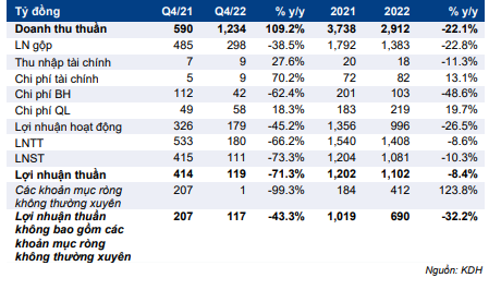 Bảng 1: KQKD Q4/2022 và năm 2022, KDH