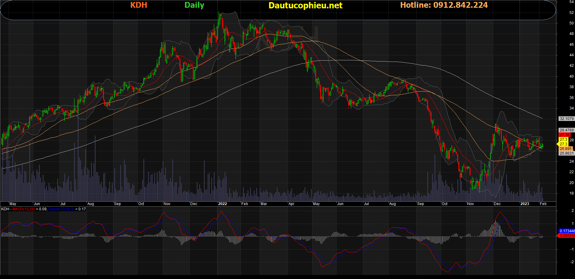 Đồ thị cổ phiếu KDH phiên giao dịch ngày 06/02/2023. Nguồn: AmiBroker