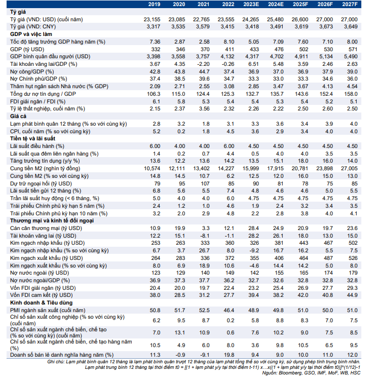 Bảng 5: Dữ liệu kinh tế vĩ mô thực tế & dự báo của HSC