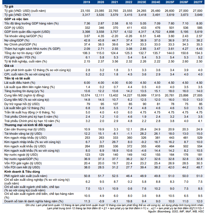 Bảng 4: Dữ liệu kinh tế vĩ mô thực tế & dự báo của HSC